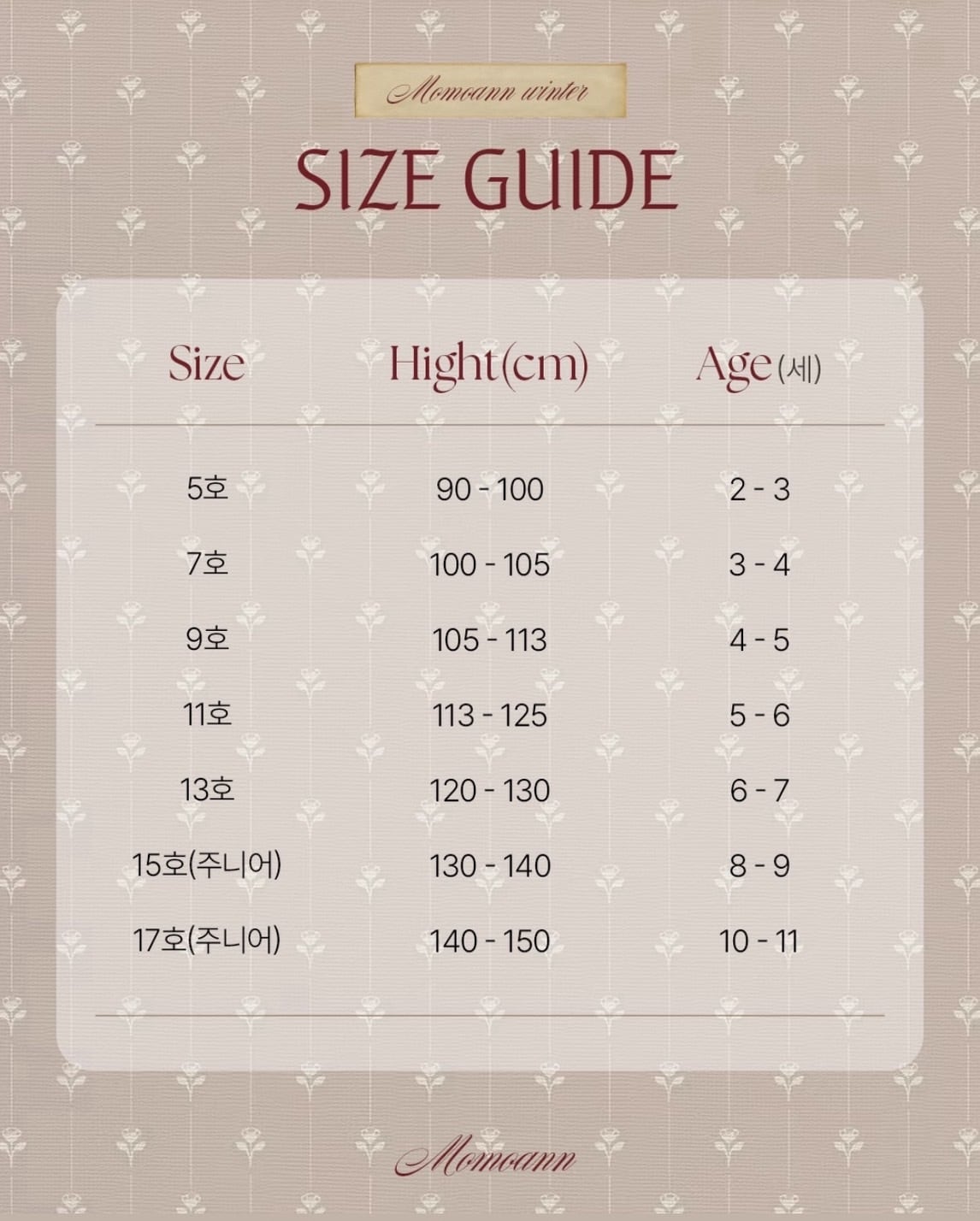 17 : 11-12y / 145-155cm / 37-42kg
