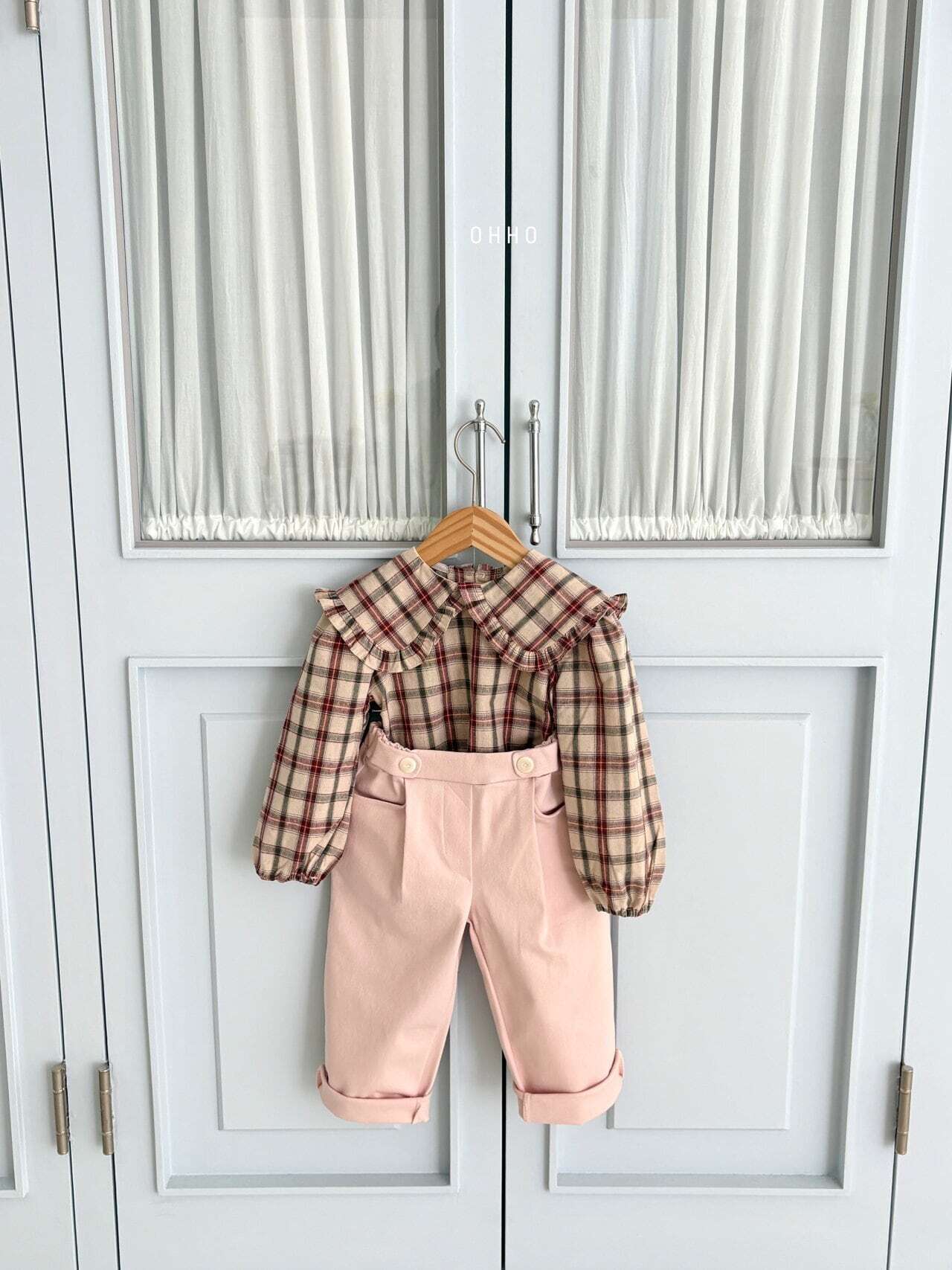 ohhoのCheck frill collar blouseです。